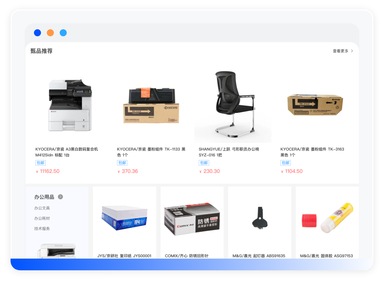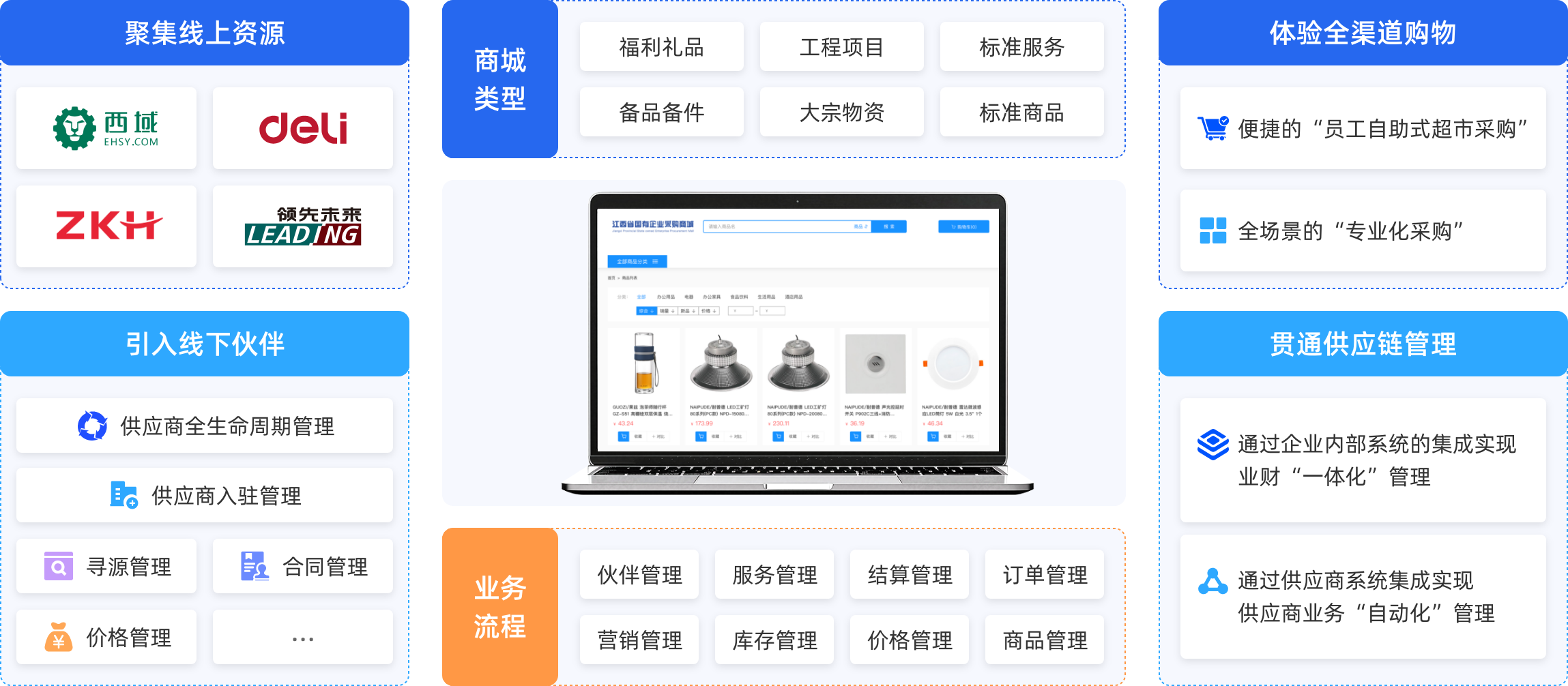 集合了震坤行、西域、得力、领先未来等头部电商平台及本地优质供应商,为企业提供